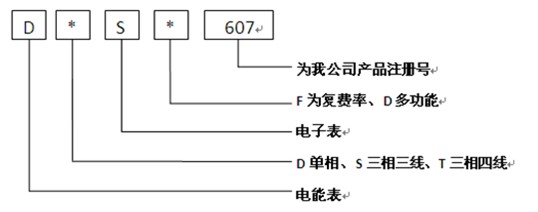 D電能表、T三相四線(xiàn)(S三相三線(xiàn))、S代表電子表、D代表多功能 、607為我公司產(chǎn)品注冊(cè)號(hào)